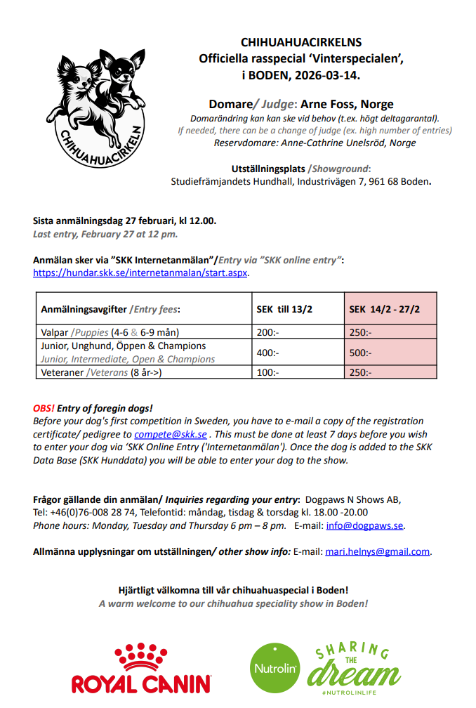 Inbjudan PDF: Chihuahua Vinterspecialen 2026